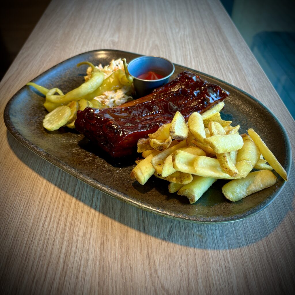 BBQ ribi, grillitud kanavarras, jalapeno vorst, marineeritud kurk, -sibul, coleslaw salat, Rocco’s BBQ kaste.
