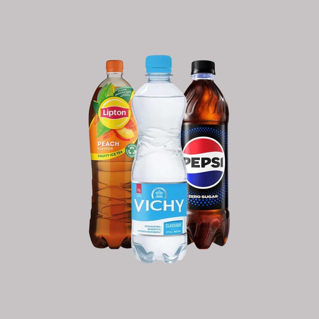 Vesi, Pepsi Cola, Lipton jäätee, Red Bull.