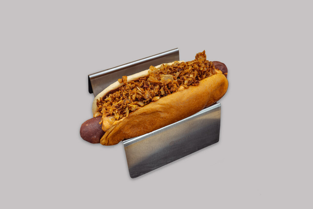 Viiner, hot dogi sai, kurgisalat, krõbesibul, Rocco’s kaste.