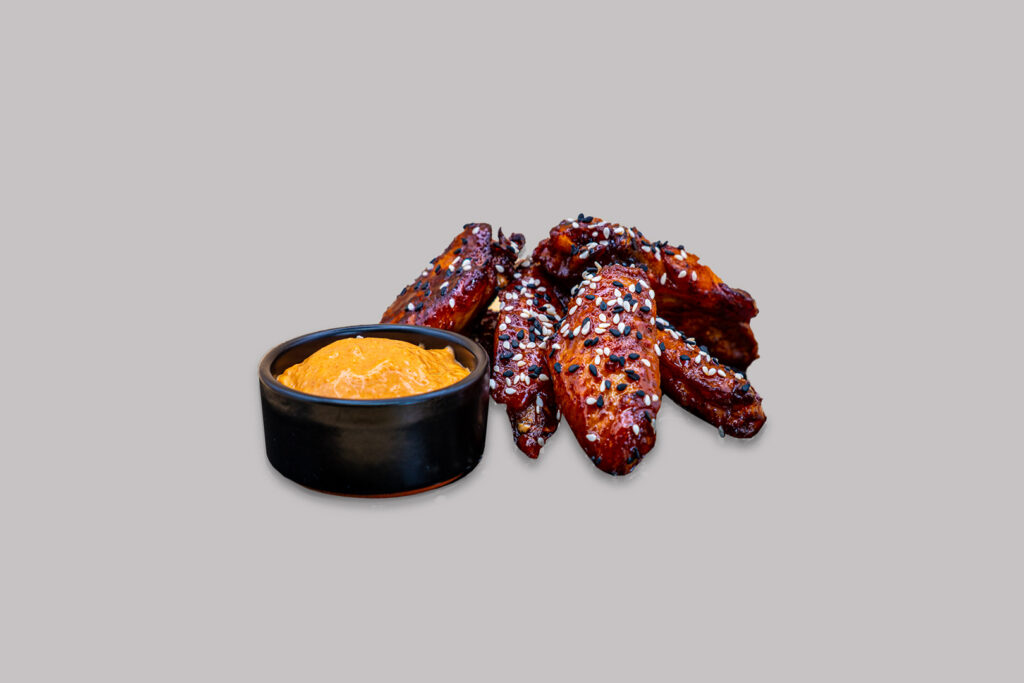 Fritüüritud BBQ kanatiivad BBQ kastmes, seesamiseemned, Rocco’s kaste