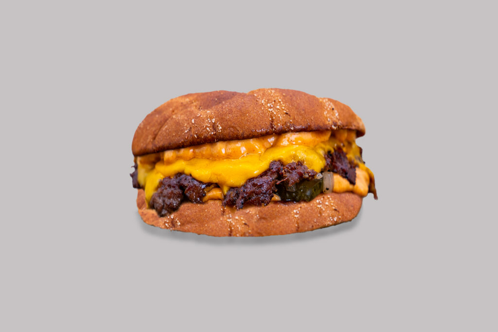 Topelt veiseliha, kartuli burgerisai, topelt juust, salatisibul, marineeritud kurk, Rocco’s kaste.